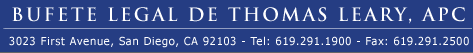 El Bufete Legal de Thomas Leary tiene su base en el Condado de San Diego y se especializa en la Ley concerniente a las lesiones personales. El Sr. Leary nació y creció en el Condado de San Diego. Se graduó de Helix High School en la Mesa en 1977, obtuvo su B.A. de la UC Davis en 1982 y recibió su título de abogado en la Universidad de Minnesota en 1985. Después de practicar el Derecho en Minnesota por varios años, el Sr. Leary regresó a San Diego el día de San Patricio en 1989.